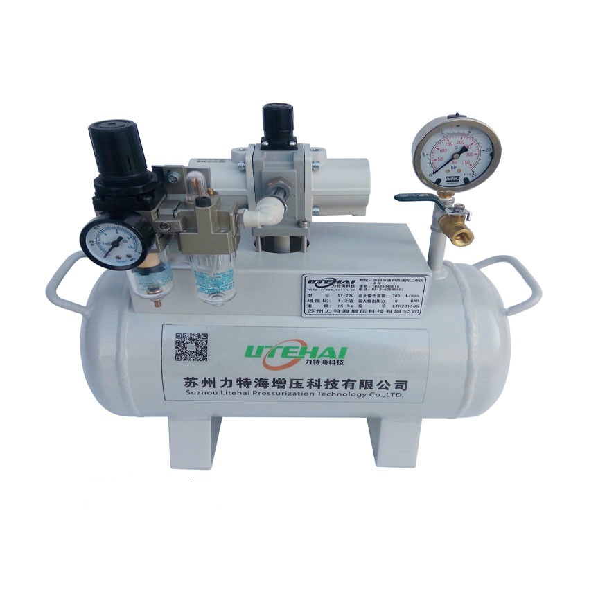1.主要用于工厂压缩空气的二级增压,可以方便解决工厂压缩空气气源压力不足的问题,空气压力可由1-8kg增压至2-40 kg等更高的压力。