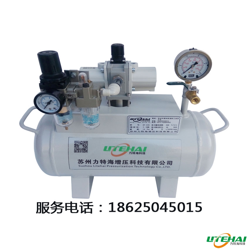 压缩空气增压系统是利用压缩空气作为动力,对空气、氧气、氮气、氩气、氦气等进行增压,增压比有2:1和5:1两种(即可对被增压介质进行两倍或五倍的增压)。该装置是一个独立的增压单元,串联在被增压管路中。具有增压速度快,使用寿命长,压力稳定,流量大,操作简单,维护方便,使用安全等特点。